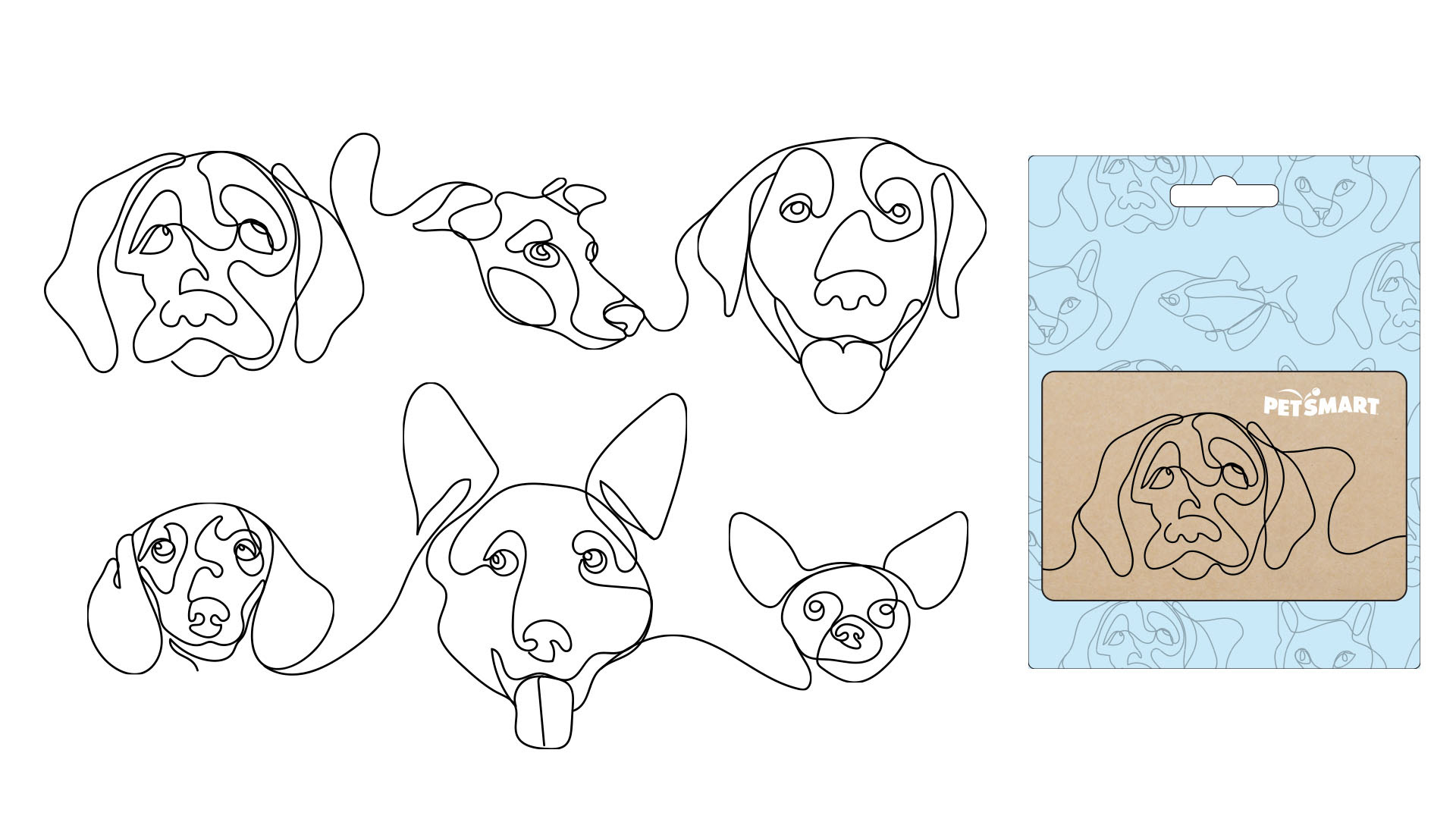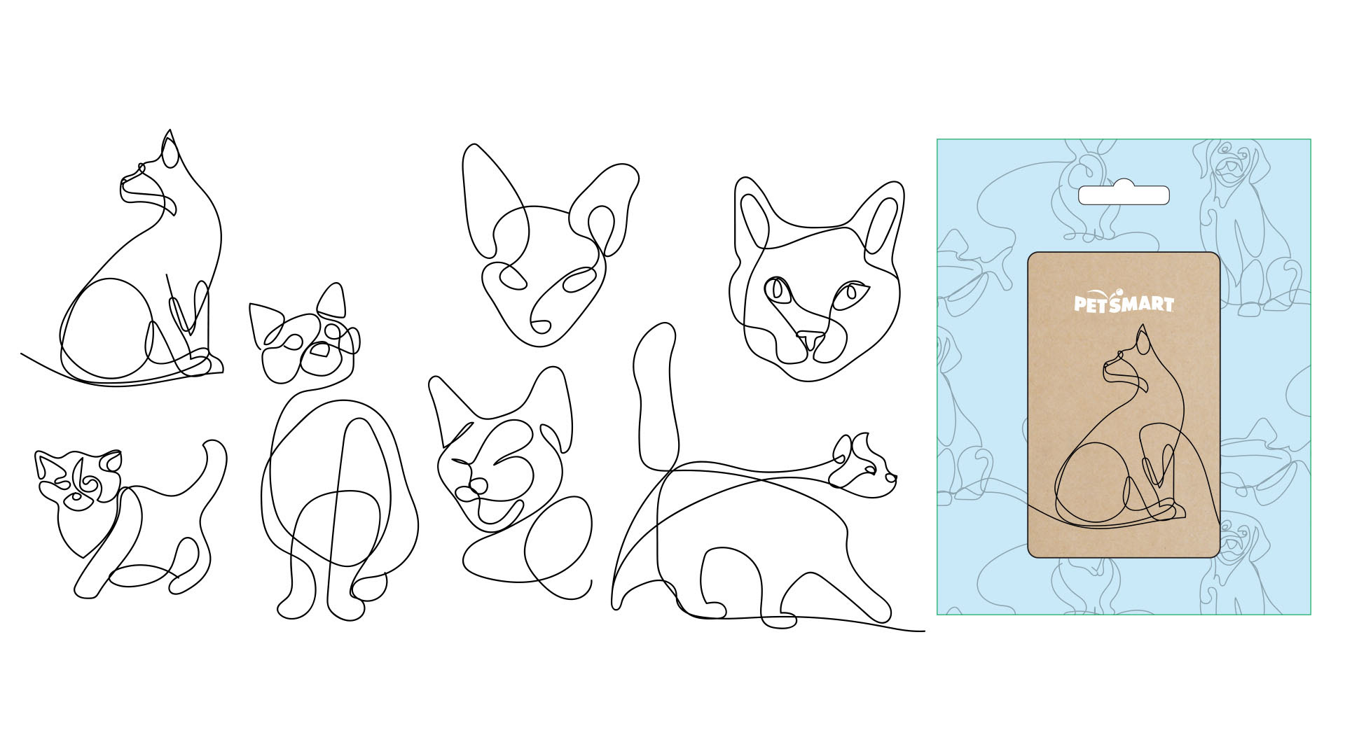 Continuous line vector illustration work I developed for PetSmart's new branding update.