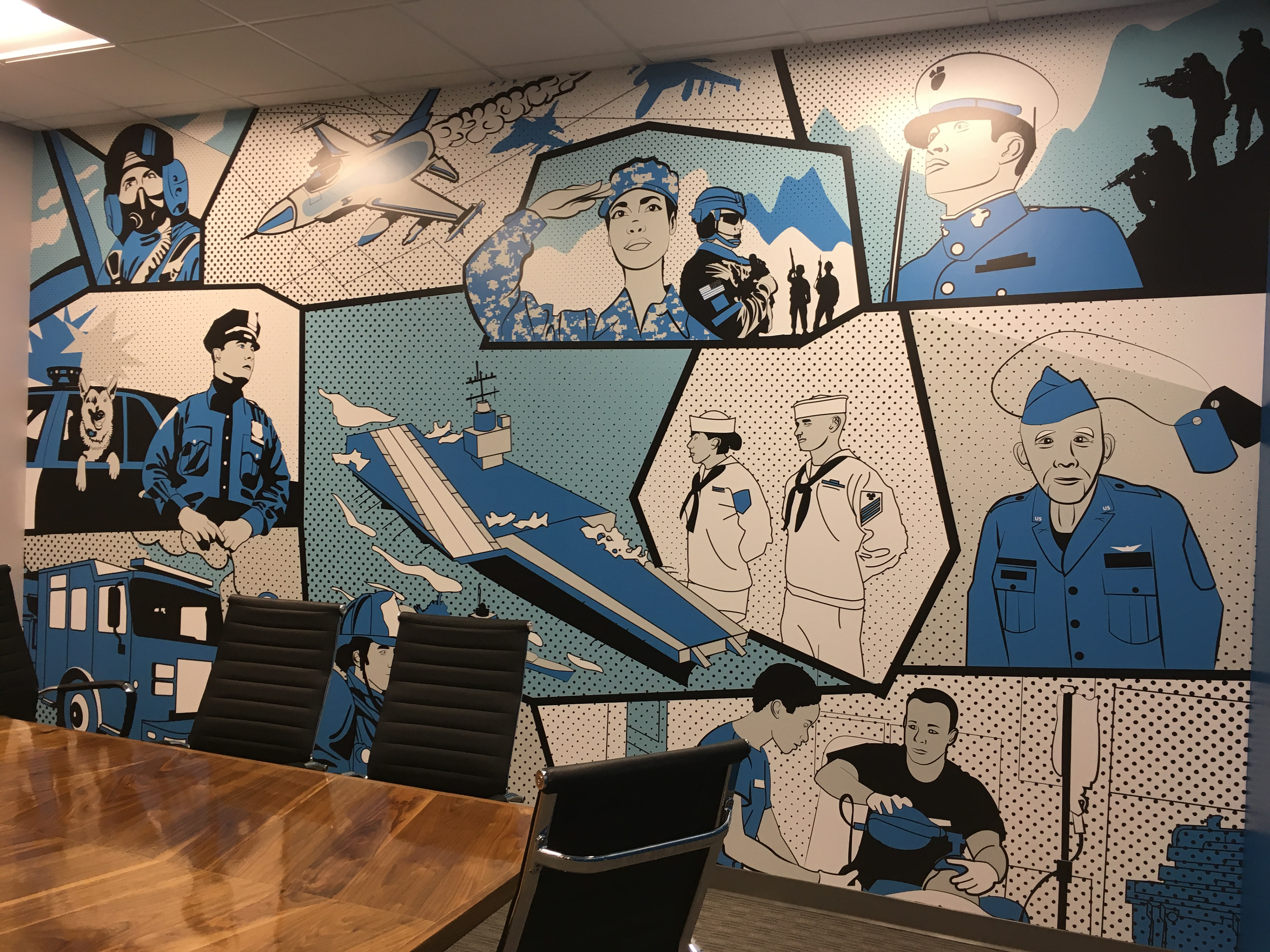 Vector mural illustrations that were placed in various conference rooms to showcase the companies values of being inclusive.