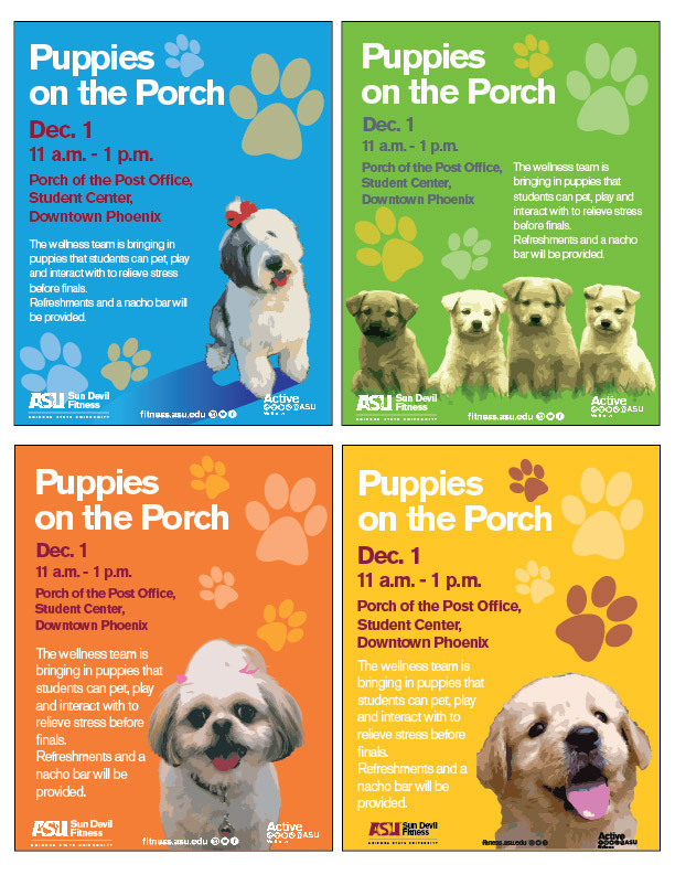 Here are various print and digital assets I made for ASU Sun Devil Fitness, such as t-shirt designs, flyers, business cards, and Instagram posts.